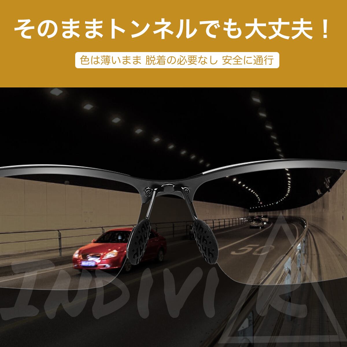 暗いところでは、レンズの色は薄くなるので、暗いトンネルの中でもサングラスをわざわざ外すことはありません。