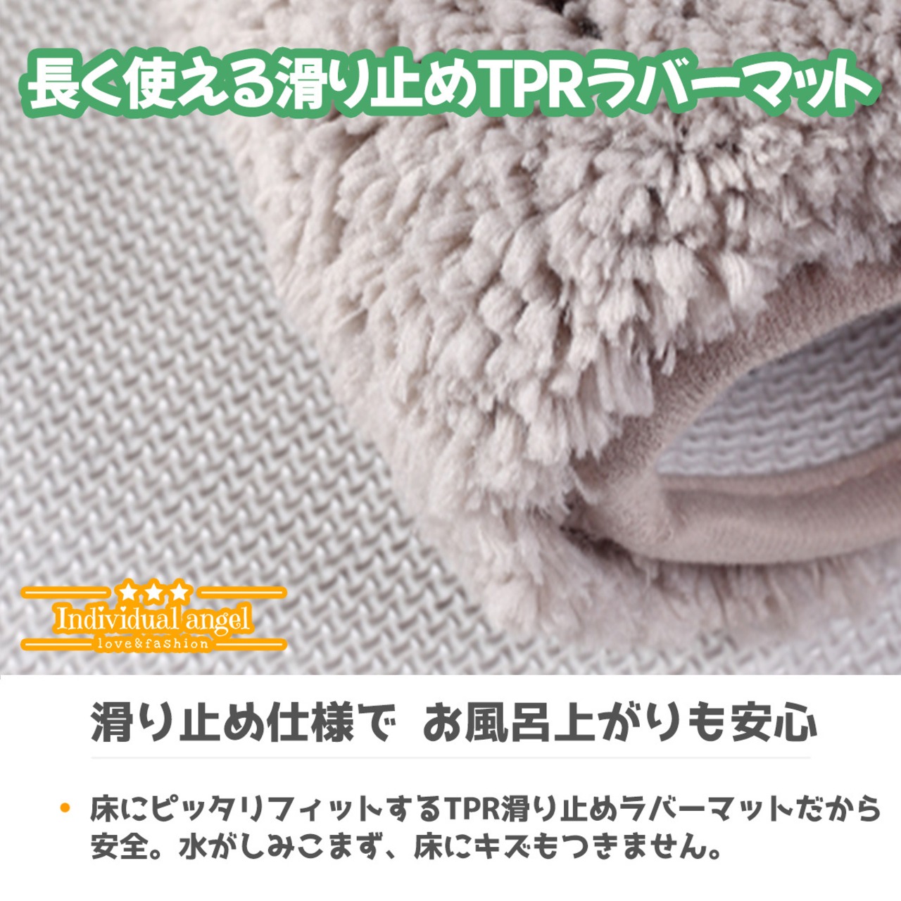 【滑り止め加工】バスマット裏面にはTPR防滑防水素材を使用。ノンスリップ加工が施してあり、子供からご年配の方まで安心してお使いいただけます。