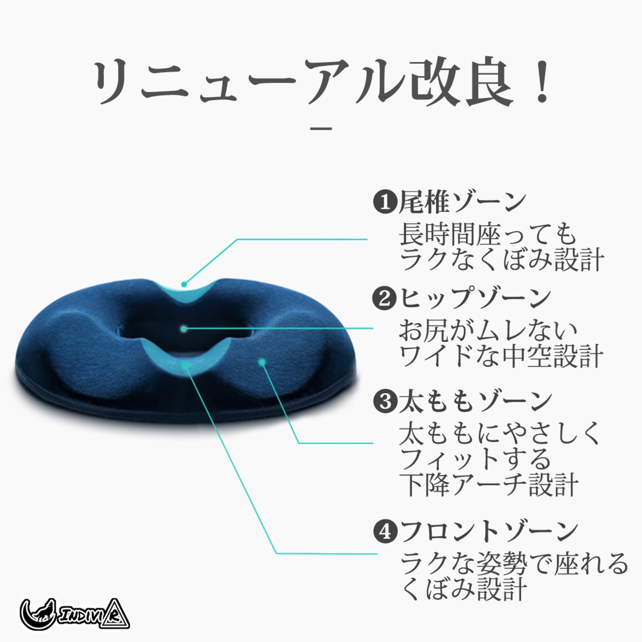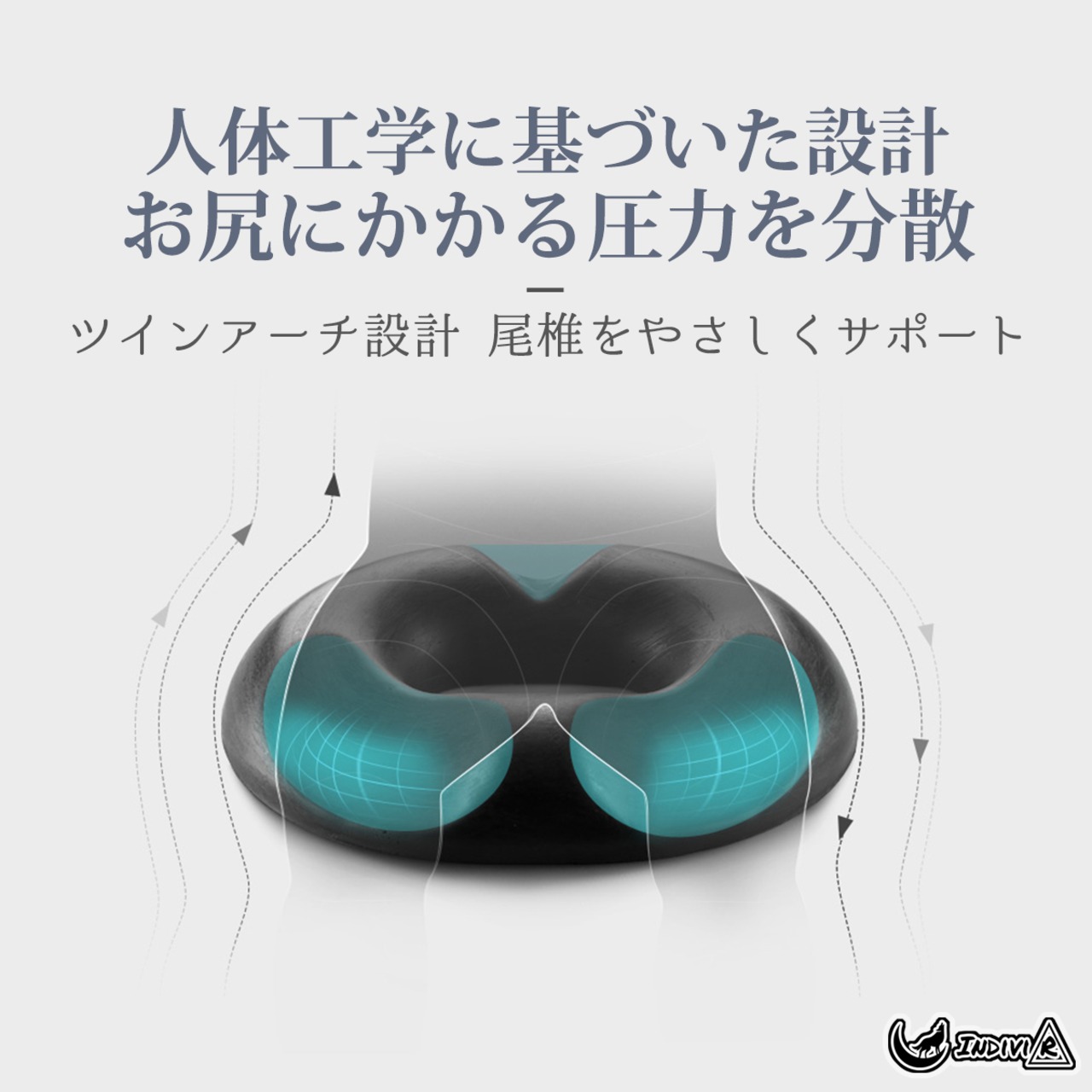 臀部や太ももへの圧力を吸収・分散させ、長時間座っても疲れにくく、お尻の痛みを気にせず快適な座り心地の健康クッションです。