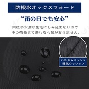 メッシュサイドポケットに折り畳み傘やペットボトルが収納できます。
