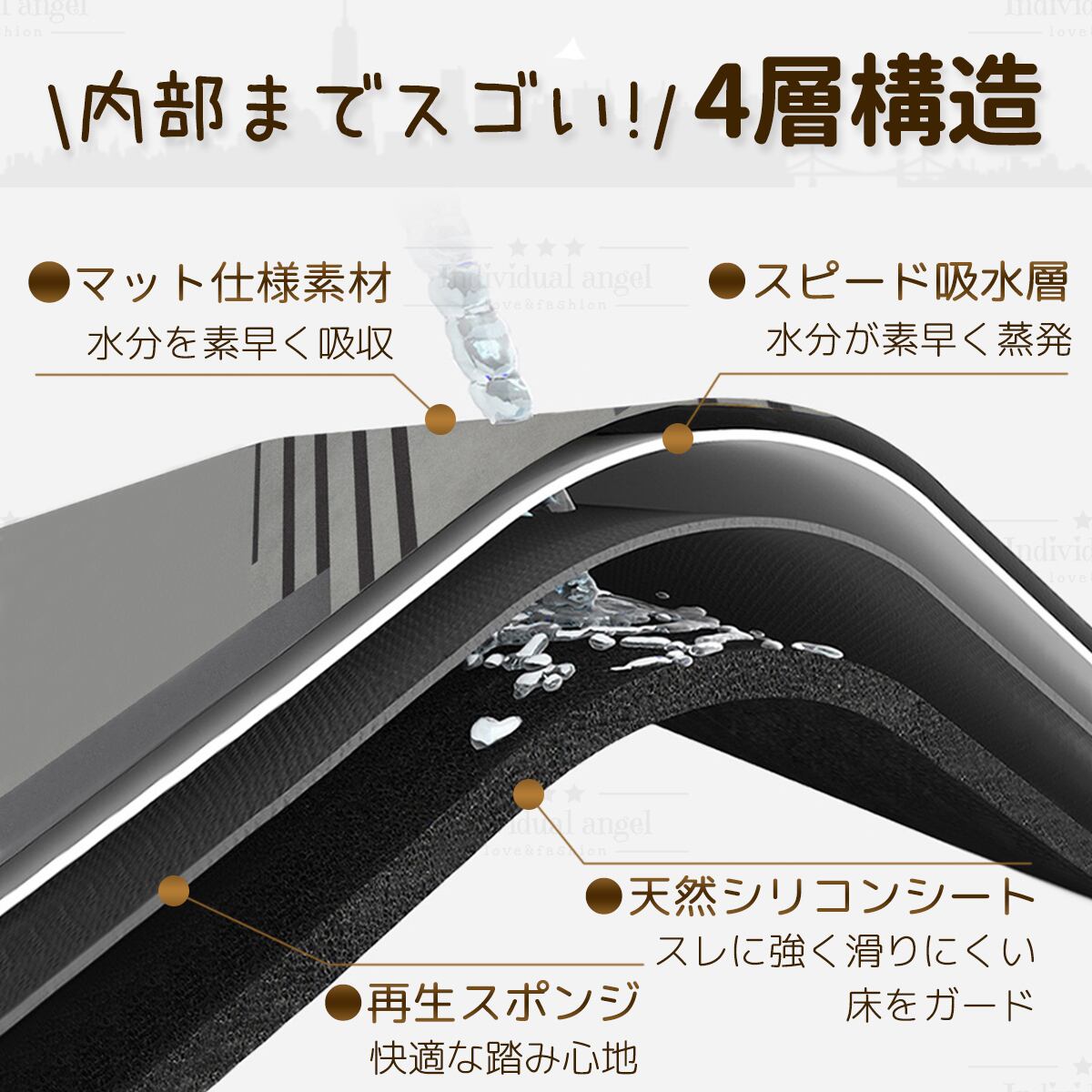 水をしっかり吸い取ってくれ毎日清潔に使えます。汚れたらサッとふきとるだけ!バイ菌やカビ菌、ダニなどの繁殖を抑え、室内のいやな臭いまで吸着してくれます。