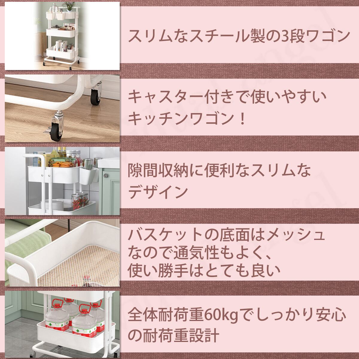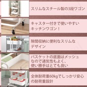 【送料無料】キッチンワゴン キャスター付き 収納 キッチン収納 キッチンラック おしゃれ スリム 3段 バスケットトローリー リビング 収納ラック 新生活 マルチワゴン リビング 台所 インテリア コンパクト リビング ハンドル ★
