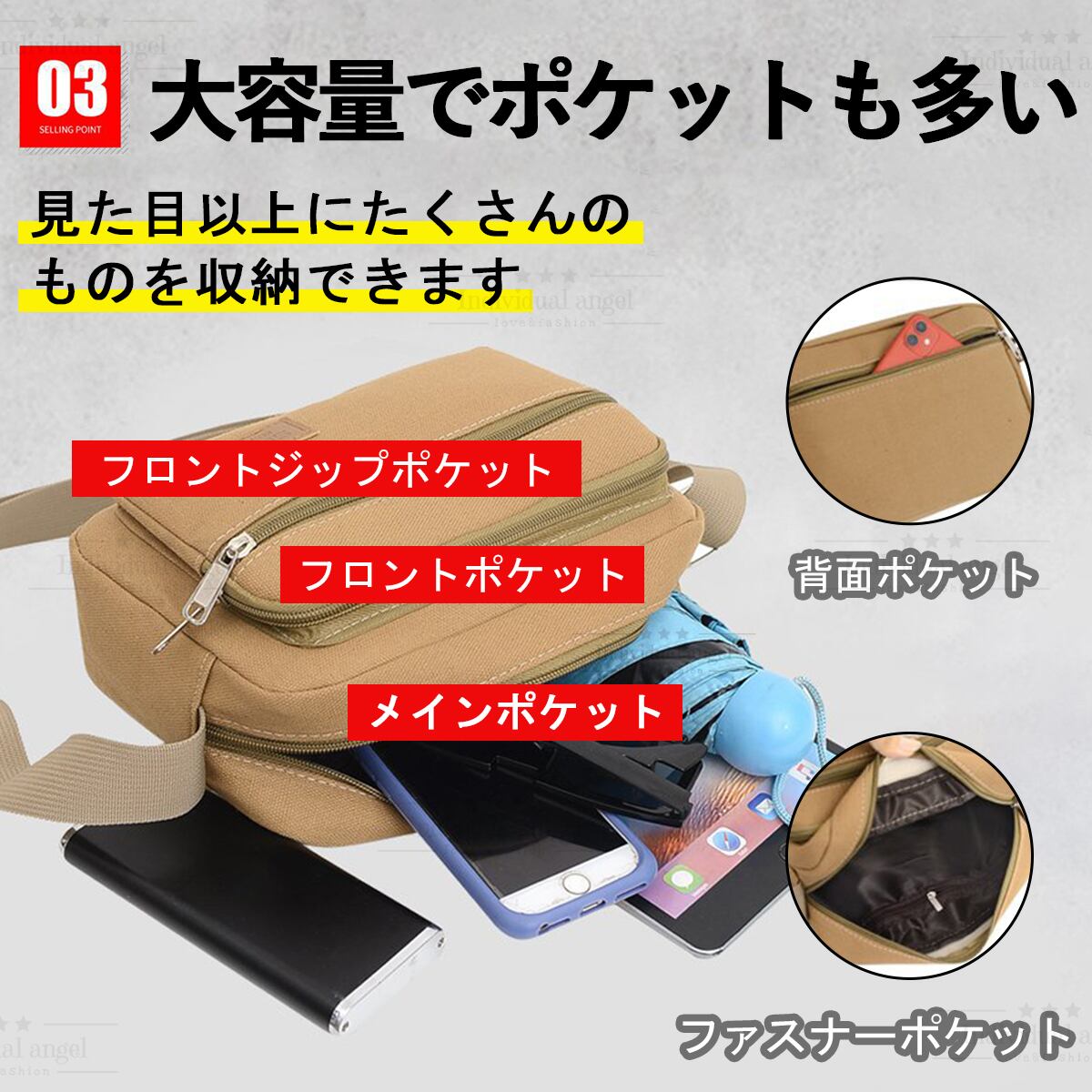 ポケットが多く見た目以上にたくさんのものを収納可能!
