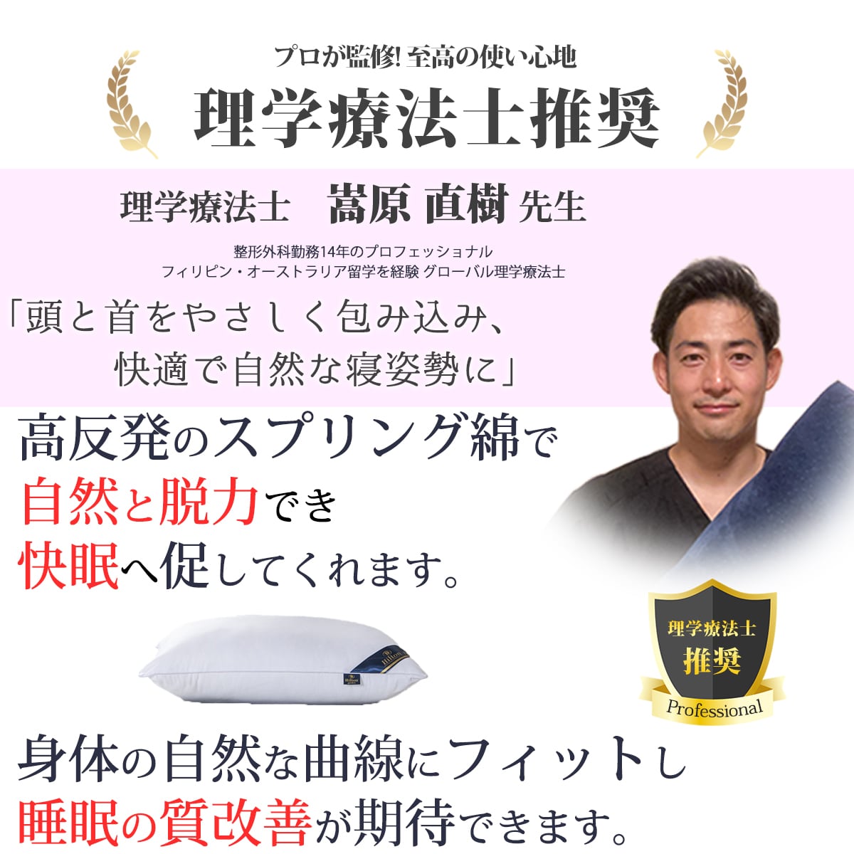 頭が宙に浮いたような不思議な感覚を体感できる高反発特殊綿(スプリング綿)を体験してみてください。