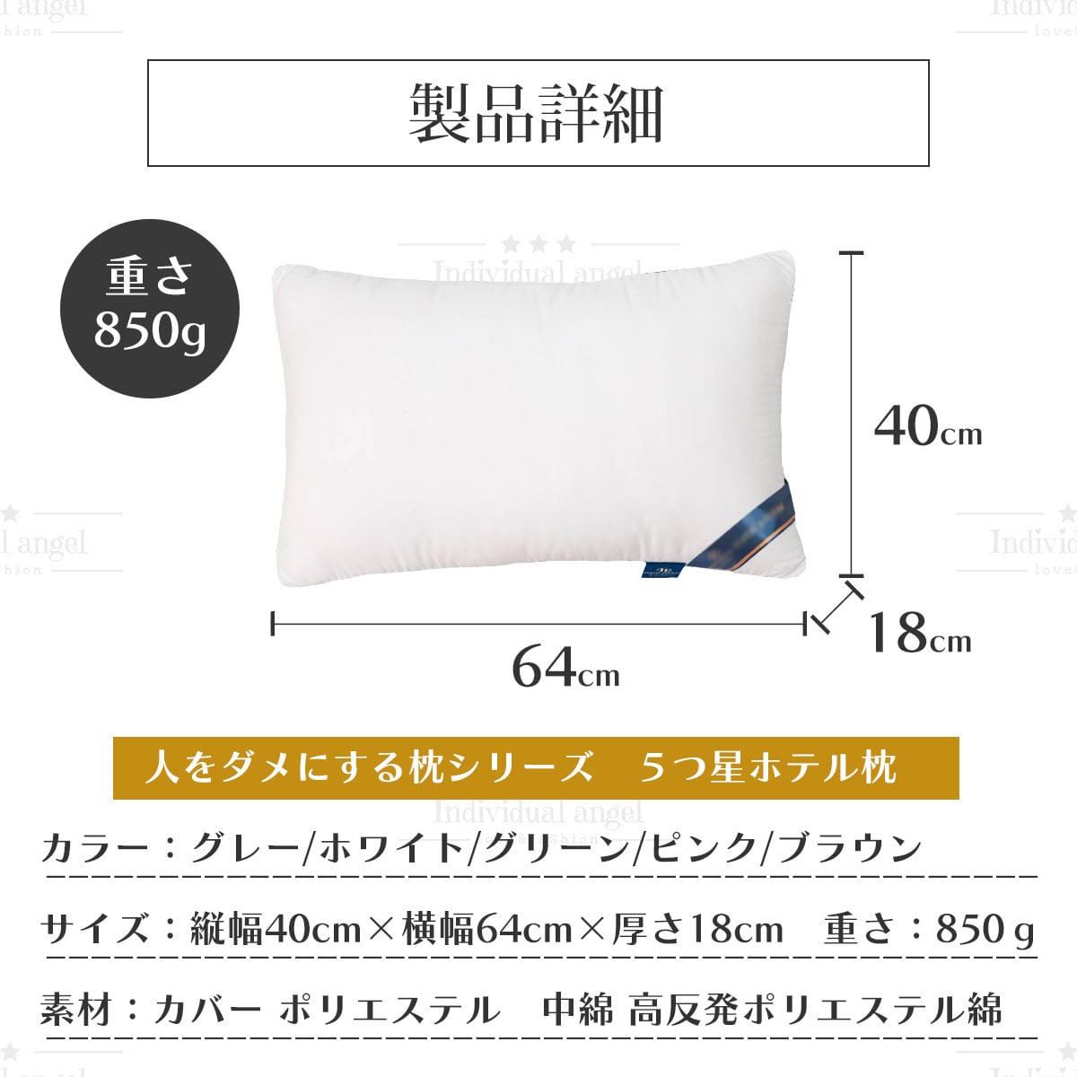 5つ星ホテル枕で使用されている、高反発特殊綿を850gの使用したホテル枕です。